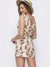 Комбинезон на завязках из легкого принтованного софта. Модель с фиксированным запахом на груди. Застегивается на скрытую молнию сбоку. Тканевой пояс в комплекте.