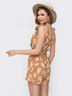 Комбинезон на завязках из легкого принтованного софта. Модель с фиксированным запахом на груди. Застегивается на скрытую молнию сбоку. Тканевой пояс в комплекте.