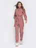 Стильный брючный комбинезон из микровельвета. Для удобства предусмотрены вместительные карманы. Застегивается на пуговицы по полочке и скрытую молнию сбоку. В комплекте пояс из основной ткани.