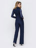 Нарядный комбинезон с лифом из тонкой глитерной ткани, расшитой пайетками. Модель с отложным воротником и разрезом в зоне декольте. Застёгивается на молнию и пуговицу по спинке. Станет идеальным вариантом для обладательниц типа фигуры «прямоугольник», «песочные часы».