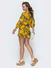 Яркий комбинезон с лифом на фиксированный запах с разрезами на рукавах. Пояс из основного материала в комплекте. Застегивается на молнию сзади.