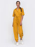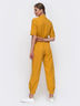 Брючный комбинезон с кулиской по талии. Модель застегивается на пуговицы по полочке.