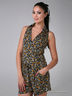 Легкий короткий комбинезон с цветочным принтом. Отложной воротник. V-образный вырез с запахом. Втачной пояс.
