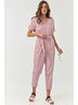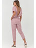 • Особенности: Комбинезон полуприлегающего силуэта из плательной ткани. Детали: цельновыкроенный рукав с притачной манжетой, V-образный вырез горловины переда, глубокий вырез по спинке скреплен завязками, брючные карманы, отвороты по низу брюк. Пояс в комплекте. Без застежки.