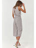 • Особенности: Комбинезон полуприлегающего силуэта, по низу - брюки-кюлоты с расклешением. Детали: округлый вырез горловины, американская пройма. В изделии предусмотрен напуск в верхней части. По талии - резинка и пояс в комплекте.