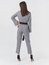 Комбинезон из костюмной ткани в клетку. Детали: V-образный вырез горловины, запах, вытачки, втачной расклешенный рукав с разрезом по низу. Отрезной по талии, брючные карманы, застежка на потайную молнию, пояс контрастного цвета с металлической пряжкой в комплекте.