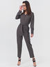 Комбинезон из костюмной ткани в полоску. Детали: отложной воротник, втачной рукав, застежка на петли-пуговицы, пояс в комплекте.