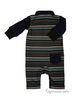 Модный комбинезон для мальчика с длинным рукавом. Модель сшита из материалов двух цветов, что имитирует жилетку. Ворот застегивается на деревянные пуговицы, на груди небольшой накладной карман с клапаном. Удобная застежка на кнопки по шаговому шву, сзади накладной кармашек. Отличный выбор!