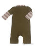 Симпатичный комбинезон из превосходной бамбуковой ткани. Модель имеет комбинированные рукава и застежку на деревянные пуговицы. Изделие дополнено ярким модным принтом, удобная застежка на кнопки по шаговому шву, отличный выбор!
