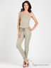 Детали: отрезной топ на широких лямках, вырез горловины лодочка с трикотажной бейкой, по поясу кулиска, два накладных кармашка, брючины заужены к низу.