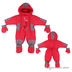 Комбинезон для девочки красного цвета. Застегивается на молнии, дополнен съемными пинетками и рукавичками.