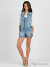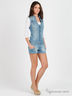 Детали: небольшой ворот-стойка, застежка на болты и молнию, пот поясу пришиты шлевки, три передних кармана, два задних кармана, имитация нагрудных карманов, эффект потертости