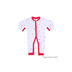 Комбинезон из рибаны с кнопками по всей длине изделия, что делает процесс одевания и раздевания очень легким. Изделие декорировано контрастной по цвету бейкой. Бейка в своем составе имеет 5% лайкры, что позволяет сохранять форму изделия при многократной стирке.