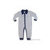 Комбинезон из рибаны с кнопками по всей длине изделия, что делает процесс одевания и раздевания очень легким. Изделие декорировано контрастной по цвету бейкой. Бейка в своем составе имеет 5% лайкры, что позволяет сохранять форму изделия при многократной стирке.