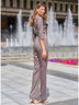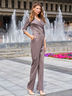 Стильный брючный комбинезон, сочетает в себе строгость классики, изысканность и женственность. На модели отложной воротник, рукав до локтя, брюки прямого кроя с двумя прорезными карманами по бокам.