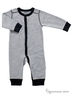 Удобная модель комбинезона с длинным рукавом. Окантовка круглого выреза, и манжеты контрастного цвета, застежка на кнопки. Декорирован оригинальным рисунком - полоска.