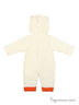 Утепленный, комфортный вариант для малыша на каждый день - комбинезон, украшен аппликацией. Изделие с капюшоном, длинными рукавами и с застежкой на кнопки по всей длине