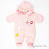 Детали: отстегивающийся капюшон с мордочкой и ушками, застежка на кнопки от выреза горловины до манжет брючин, "ботиночки" отстегиваются, маленький передний кармашек, декоративные нашивки и вышивка