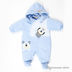 Детали: отстегивающийся капюшон с мордочкой и ушками, застежка на кнопки от выреза горловины до манжет брючин, "ботиночки" отстегиваются, маленький передний кармашек, декоративные нашивки и вышивка
