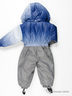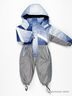 Теплый зимний комбинезон выполнен из тонкой плащевки с плотным синтепоновым наполнителем и с хлопковой подкладкой. Застежка на молнию и на клапан с кнопками и липучками, съемный глубокий капюшон, длинный прямой рукав и низ изделия присборены на резинки, два прорезных кармана на молнии, низ изделия дополнен эластичными штрипками.