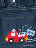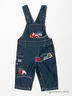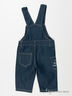 Полукомбинезон из тонкой джинсы, на лямках. Застежка на кнопки с внутренней стороны штанин. Карман с аппликацией на нагруднике, карман на штанине. Можно использовать как летний полукомбинезон-шорты.