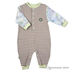 Комбинезон прямого силуэта с округлым вырезом горловины и длинным рукавом. Застежка на кнопки на полочке и классическая боди-застежка на кнопки в пройме. Изделие декорировано принтами.