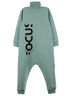 Комбинезон с длинным рукавом на манжетах. По переду косая застежка на молнии. В боковых швах карманы. Изготовлен из футера без начеса с эластаном. На спинке стильный принт.