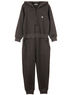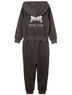 Комбинезон с капюшоном. Рукава и штанины на манжетах. Спереди застежка на молнию. На спинке стильный принт. Изготовлен из петельчатого футера с эластаном.