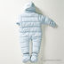 В этом комбинезоне все продумано до мелочей: глубокий капюшон, отстегивающиеся варежки и башмачки, манжетки на рукавах и штанинах, а так же клапан, закрывающий молнию застежки - все это обеспечивает сохранение тепла. Но самое главное - его очень удобно надевать и снимать. А прекрасный дизайн этой модели никого не оставит равнодушным. Пастельно-голубой, лаконичный, но при этом невероятно стильный. Температурный режим: до -15 °С.