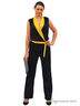 Замечательный комбинезон, выполненный в контрастной расцветке. Модель с V-образным вырезом горловины и широкими бретельками. Изделие декорировано поясом. Прекрасный вариант для вашего гардероба.