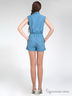 Стильный комбинезон из плотной ткани. Стояче-отложной воротничок. Застежка на планку с пуговицами. Талия подчеркивается пояском, завязывающимся на полочке. Короткие широкие брючины. Два прорезных кармана.