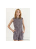 Стильный комбинезон из вискозного материала. Ворот-стойка. Застежка на планку с пуговицами. Втачной пояс. Спереди два прорезных кармана. Прямые короткие брючины.