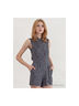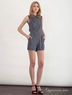 Стильный комбинезон из вискозного материала. Ворот-стойка. Застежка на планку с пуговицами. Втачной пояс. Спереди два прорезных кармана. Прямые короткие брючины.