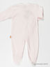 Трикотажный комбинезон прямого силуэта с округлым вырезом горловины и длинным рукавом. Застежка на кнопки от выреза горловины до формованного следа на левой ножке. Изделие украшено рисунками.
