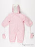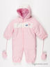 Комбинезон с капюшоном и длинным рукавом выполнен из хлопкового материала, с синтепоновым утеплителем и хлопковым подкладом. Съемные синтепоновые варежки на веревочке. Рукава и брючины посажены на манжеты с вшитой резинкой. Полочка и капюшон декорированы контрастными вставками с нашивками и вышивкой.