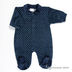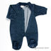 Мягкий велюровый комбинезон с отложным воротником и длинным рукавом. Застегивается на кнопки на левом плече.