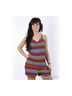 Короткий комбинезон с V-образным вырезом и узкими бретельками, которые можно завязывать на шее или спине. Низкий пояс на кулиске, боковые карманы. Логотип внизу.