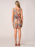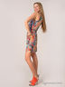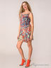 Детали: вырез каре горловины, тонкие бретели, пояс присборен на резинку, короткие шорты, стильный принт акварель.
