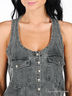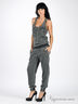 Комбинезон выполнен из приятной к телу ткани. 2 накладных нагрудных кармана, 2 набедренных втачных. Втачной пояс в виде трикотажной резинки. Брючины присборены многорядной резинкой.