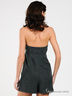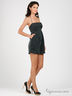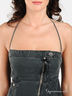 Детали: широкий отрезной пояс, тонкие лямки, спереди застегивается на металлическую молнию, пуговицу и кнопку, 2 втачных кармана