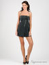 Детали: широкий отрезной пояс, тонкие лямки, спереди застегивается на металлическую молнию, пуговицу и кнопку, 2 втачных кармана