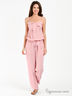 Детали: тонкие бретели регулируются по длине; пояс и низ штанин на резинке; два втачных кармана; верх спинки на многорядной резинке; в комплекте поясок
