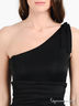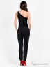 Стильный комбинезон из тонкой эластичной ткани бифлекс прямого силуэта с широкой бретелью, завязывающейся на плече. Втачной пояс дополнен резинками по бокам, два втачных кармана, брюки - "морковки". Будьте в центре внимания каждый день.