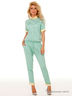 Стильный комбинезон с короткими рукавами и отложным воротником. Брючины длиной семь восьмых. Изделие современного дизайна выполнено из качественного материала приятной расцветки. Декорирована модель планкой с застежкой на пуговицы и втачными карманами. Комбинезон станет прекрасной составляющей Вашего гардероба.