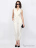 Комбинезон без рукавов из костюмной ткани. Брюки свободного силуэта с накладными карманами по бокам, внизу брюк резинка. Верх комбинезона декорирован английским воротником и глубоким вырезом. Отличный вариант для Вашего гардероба.