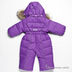 Теплый пуховой комбинезон с капюшоном на кнопках и кулиске. Отстегивающийся мех, воротник стойка, застегивается на молнию и кнопки, спереди 2 прорезных кармана, талия на резинке, снизу силиконовые регулируемые штрипки.