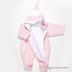 Оригинальный утепленный комбинезон для девочки. Выполнен из мягкого велюрового материала. Подкладка из тонкого эластичного трикотажа, утеплитель - тонкий синтепон. Застегивается на кнопки спереди. Капюшон оригинального кроя, формованный след. На полочке оригинальная вышивка.