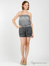 Легкий комбинезон из комфортного льняного материала. Втачной пояс резинка, два накладных кармана с клапанами на кнопках, короткие свободные шорты, полочка декорирована стразами. Отличный вариант на лето!