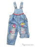 Комбинезон-шорты с двумя карманами , застегивается на лямках и по бокам на пуговицы, длинна брючин регулируется. Украшен вышивкой.