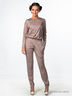 Прекрасный комбинезон с длинными рукавами и фигурным вырезом горловины. Изделие с прямой формой брючин дополнено втачными карманами. На талии модель оформлена вшитым поясом.